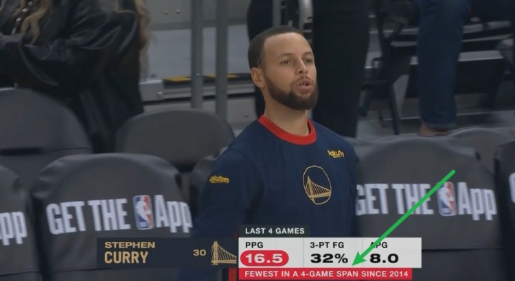庫(kù)里過去四戰(zhàn)場(chǎng)均16.5分 創(chuàng)個(gè)人自2014年以來四戰(zhàn)場(chǎng)均最低分