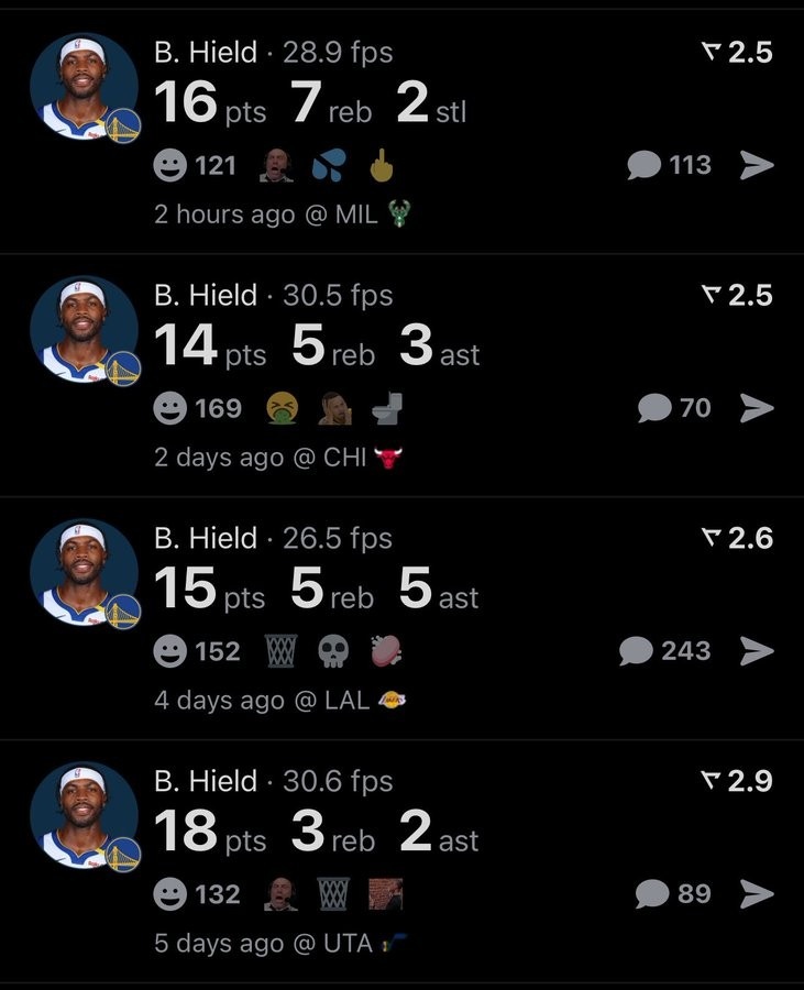 2月11日訊 勇士今日客戰(zhàn)125-111力擒雄鹿。勇士球員希爾德首發(fā)出戰(zhàn)30分鐘,15投7中,三分8中2,得到了16分7籃板1助攻2搶斷。最近4場(chǎng)比賽,希爾德場(chǎng)均可以得到15.8分2.8助攻5籃板,投籃命中率43.6%。 本文標(biāo)簽: NBA 籃球 西部 勇士