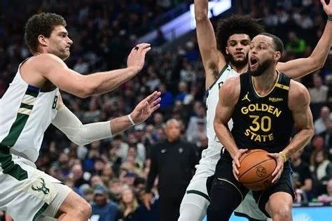 吉米自己背身拿球,讓雄鹿高塔洛佩斯得在意這一側(cè);追夢內(nèi)切,庫里突破直取洛佩斯。