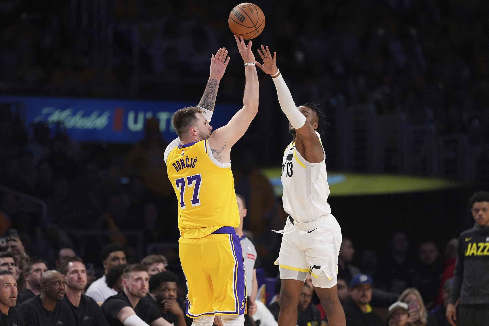 東皇組合不存在球權(quán)問題,東契奇全面的進攻手段完美適配老詹和湖人。