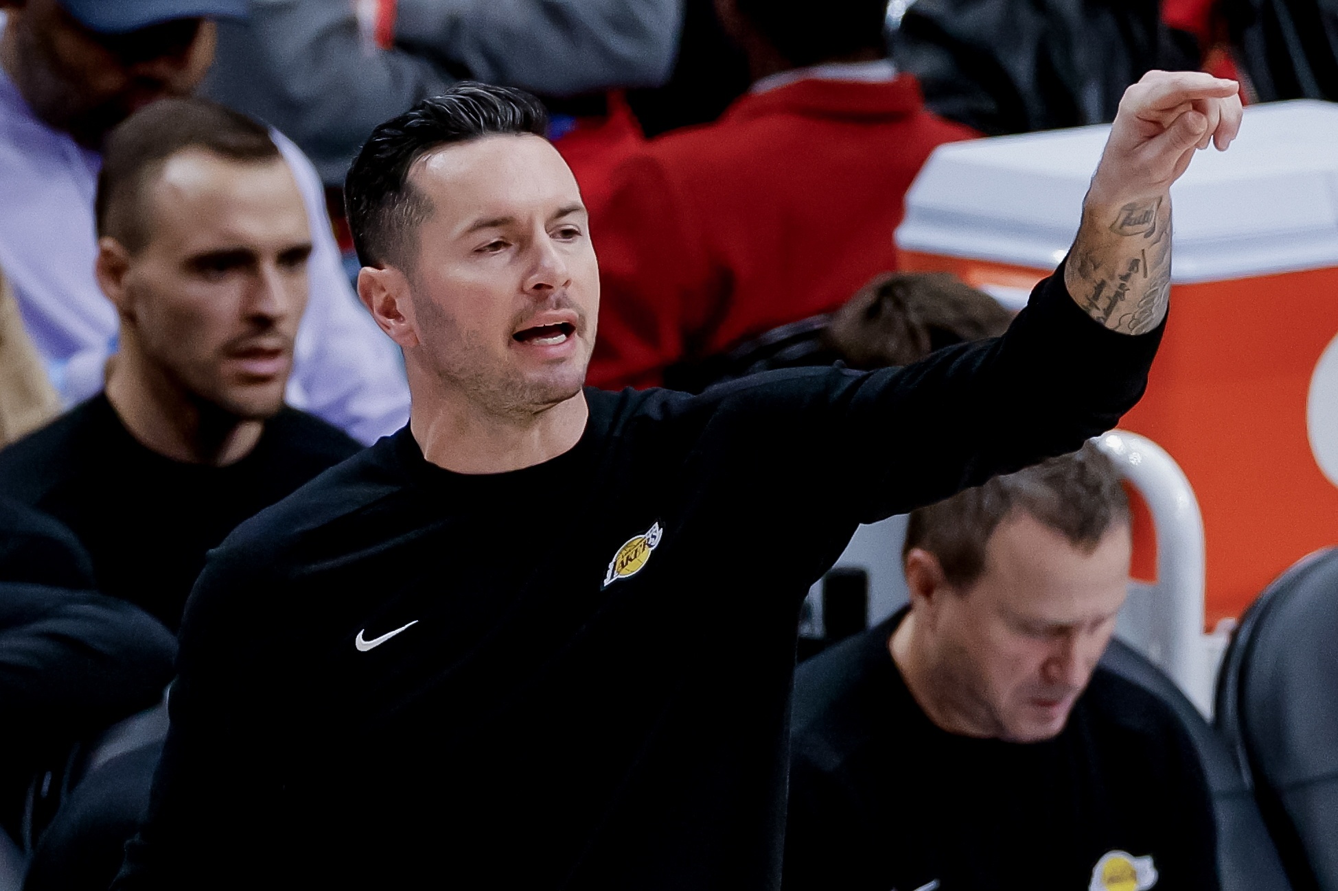 具體的陣容選擇還有待觀察。例如,讓海斯和賈里德-范德比爾特一起上場(chǎng)的決定似乎有點(diǎn)奇怪,因?yàn)樗麄兪呛岁?duì)核心輪換陣容中的兩名非射手球員。但這里有一個(gè)明確的邏輯。在賽季開始前,雷迪克曾表示——哪怕只是開玩笑——他希望湖人隊(duì)每場(chǎng)比賽投50個(gè)三分球。很明顯,這并沒有發(fā)生。只有掘金隊(duì)、猛龍隊(duì)和快船隊(duì)比湖人隊(duì)投得更少。但在周二對(duì)陣爵士隊(duì)的比賽中,湖人隊(duì)出手了42個(gè)三分球,追平了他們本賽季三分球出手次數(shù)第四高的紀(jì)錄。