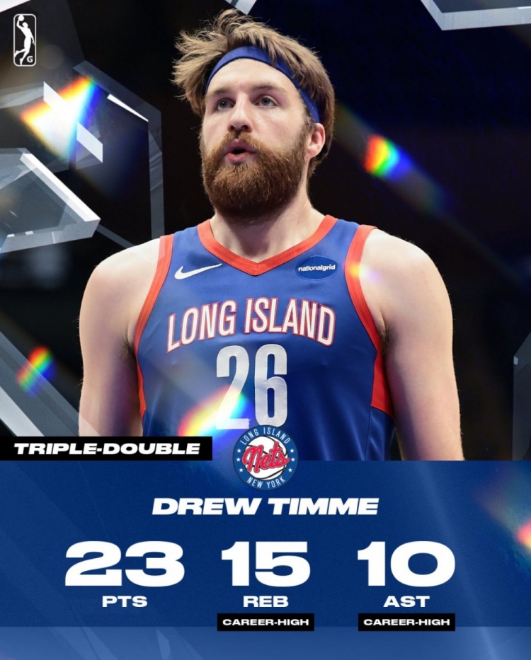- 古典中鋒!德魯-蒂米在G聯(lián)盟19中7砍23分15板10助 生涯首次三雙
