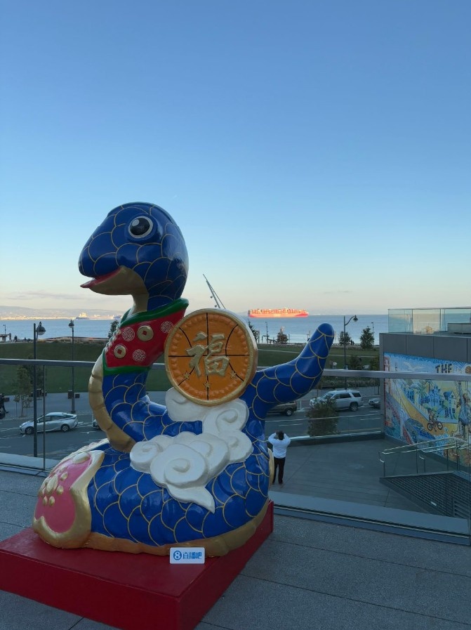 金蛇祈福喜報(bào)春!勇士主場(chǎng)大通中心外設(shè)蛇形雕像迎春節(jié)