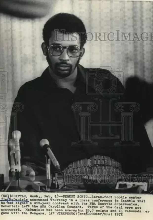 麥克丹尼爾斯在大學進了NCAA全美一陣,隨后在ABA打了一年場均26.8分14籃板,算是全美聞名的超級新人內(nèi)線