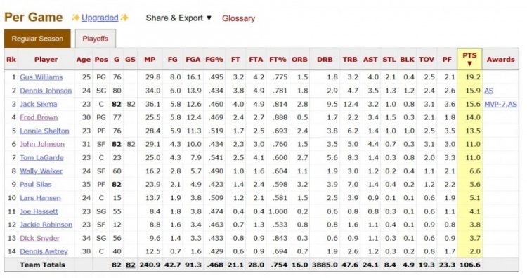 不過有一說一當時的超音速已經(jīng)全面換血,核心球員古斯-威廉姆斯(前不久才剛剛?cè)ナ溃?、丹尼?約翰遜、杰克-西克瑪都是后面加入的