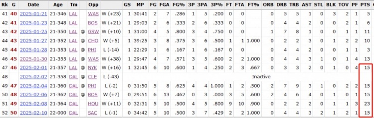 如果算上在湖人的時(shí)期,克里斯蒂已經(jīng)連續(xù)6場(chǎng)比賽得分15+(湖人1場(chǎng),獨(dú)行俠5場(chǎng))。