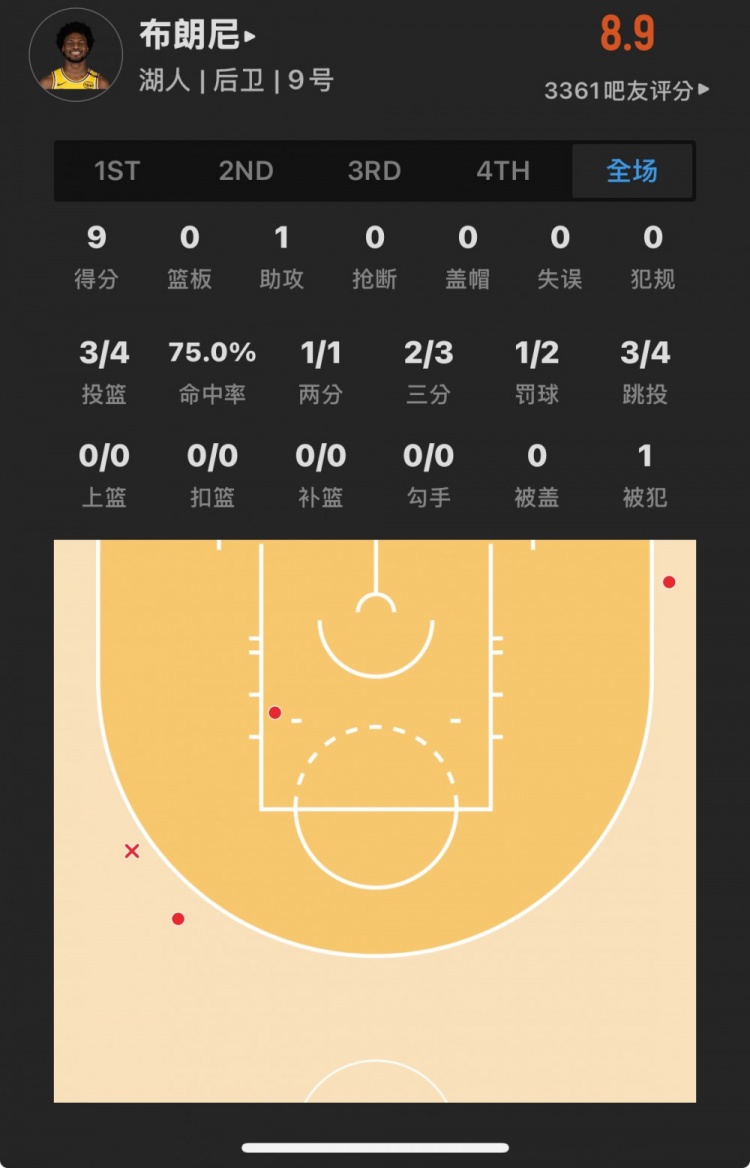 湖人55號秀 布朗尼-詹姆斯 登場7.7分鐘