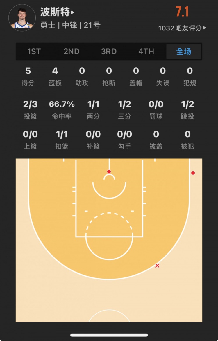 勇士52號秀 昆滕-波斯特 登場11.7分鐘