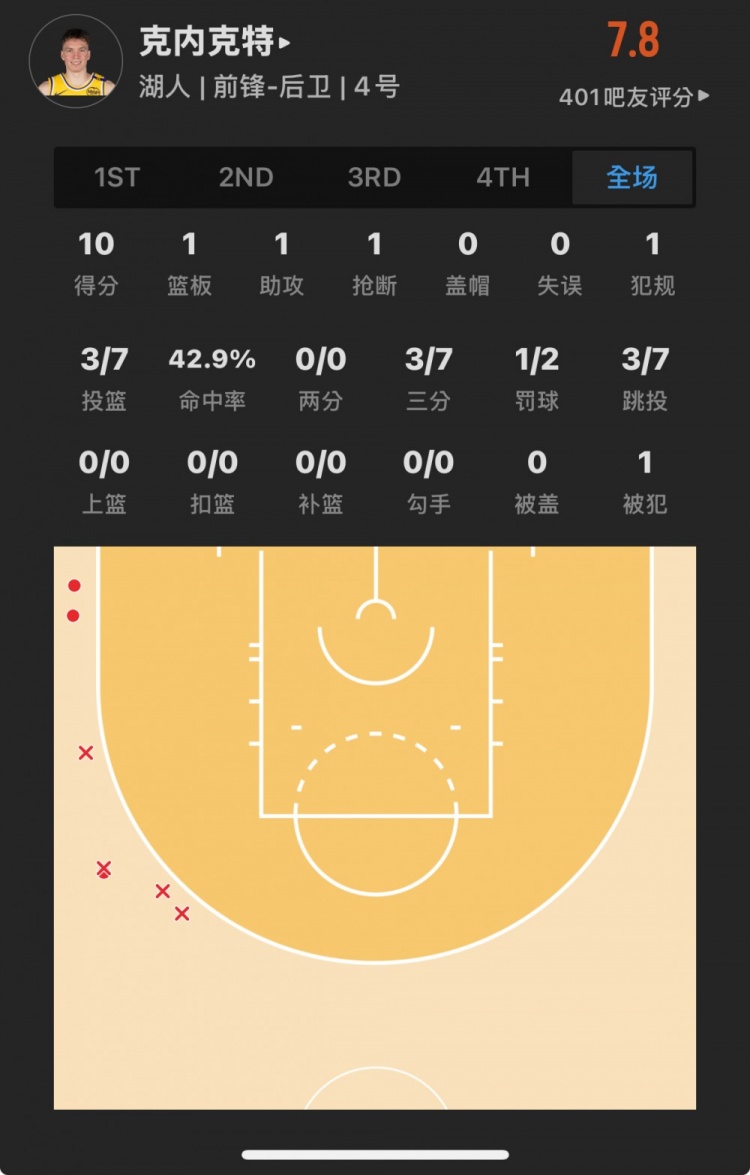 湖人17號秀 道爾頓-克內(nèi)克特 登場16.7分鐘