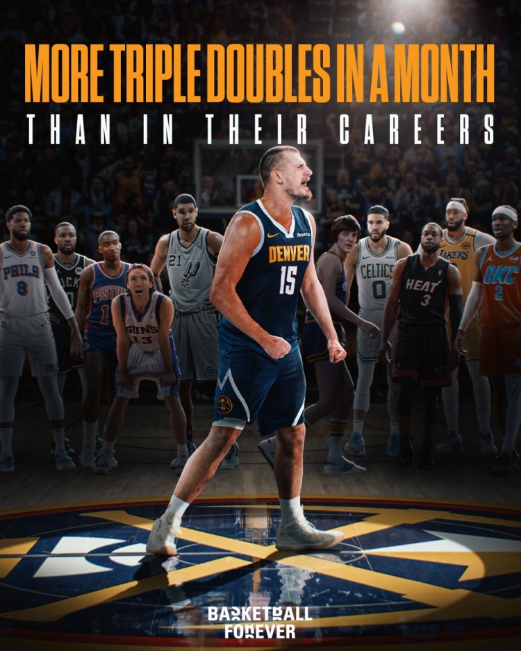 約基奇本月已經(jīng)拿下了8次三雙,超過以上每位球員的生涯三雙數(shù)。