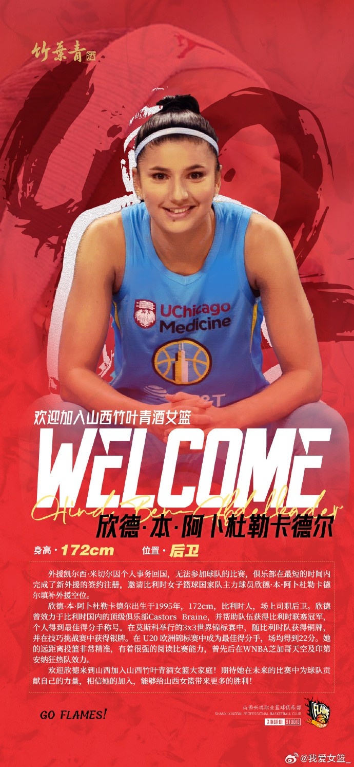 山西女籃官方介紹:外援凱爾西-米切爾因個(gè)人事務(wù)回國,無法參加球隊(duì)的比賽,俱樂部在最短的時(shí)間內(nèi)完成了新外援的簽約注冊(cè),邀請(qǐng)比利時(shí)女子籃球國家隊(duì)主力球員欣德-本-阿卜杜勒卡德爾填補(bǔ)外援空位。