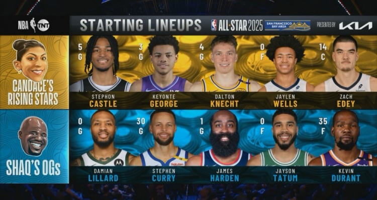 奧尼爾隊:利拉德、庫里、哈登、塔圖姆、KD。