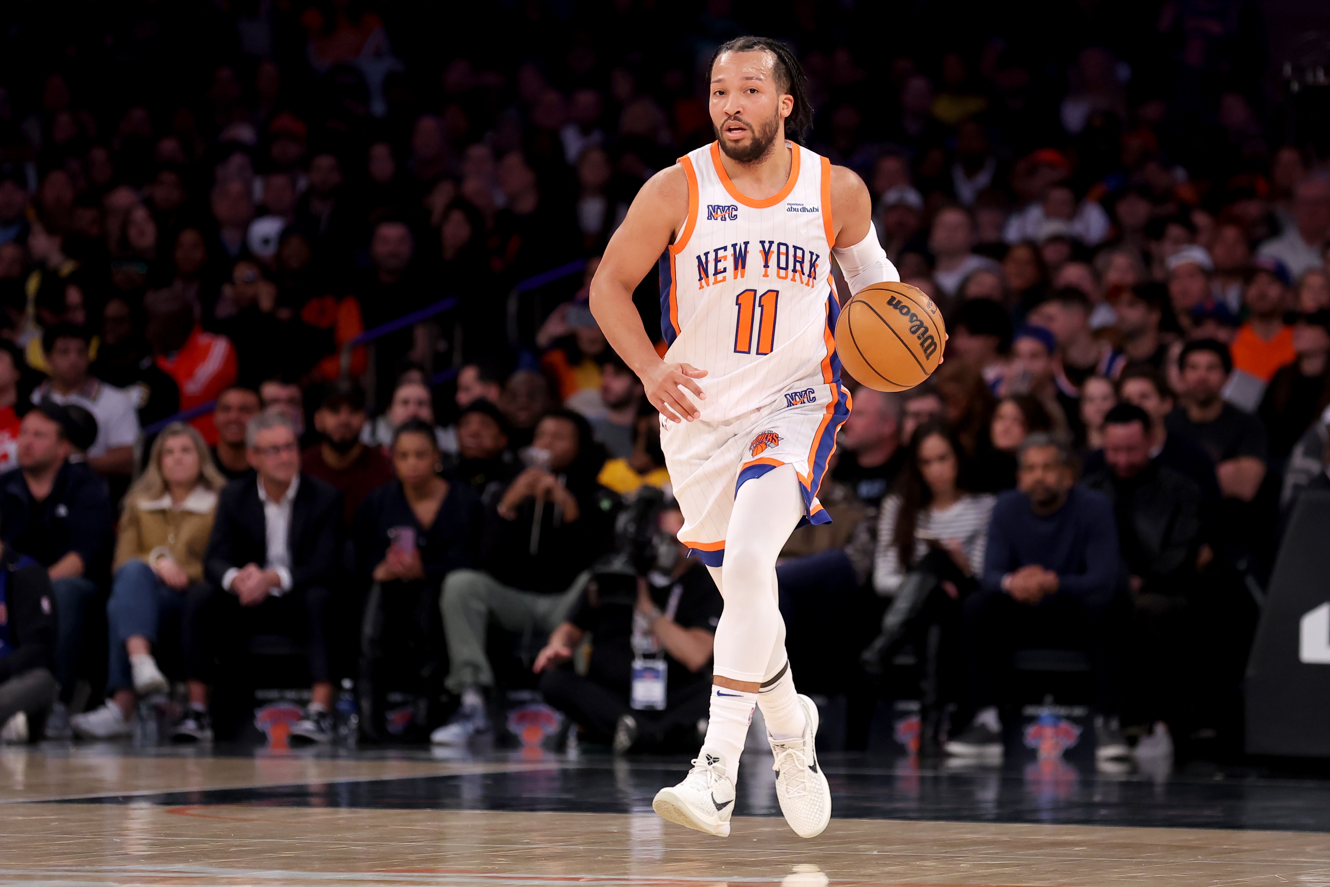 在唐斯來到尼克斯隊(duì)的第一個(gè)賽季,他場均可以得到24.3分和職業(yè)生涯新高的13.5個(gè)籃板,同時(shí)投籃命中率為53.3%,三分球命中率為職業(yè)生涯新高的42.6%,并在他的第五次全明星之旅中首次首發(fā)出場。與此同時(shí),布倫森以場均25.9分和職業(yè)生涯新高的7.5次助攻連續(xù)第二次入選全明星賽。但是,盡管他們進(jìn)攻能力很強(qiáng),人們?nèi)匀粦岩伤麄儍扇耸欠衲軌虺蔀橐恢Э偣谲娂墑e球隊(duì)中防守足夠好的核心球員。