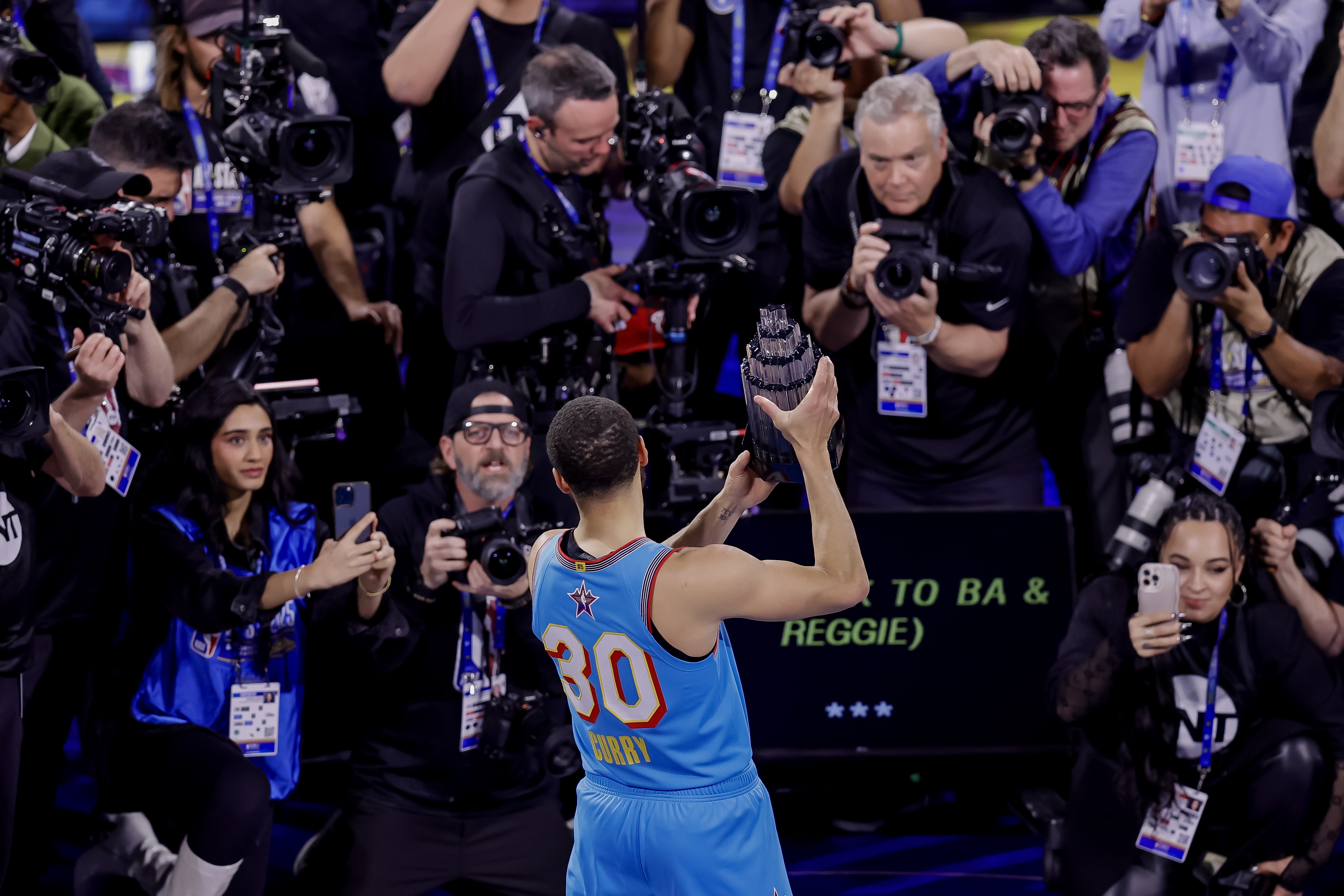 在今天結(jié)束的NBA全明星正賽中,奧尼爾隊決賽以41-25戰(zhàn)勝巴克利隊,庫里當(dāng)選全明星正賽MVP。