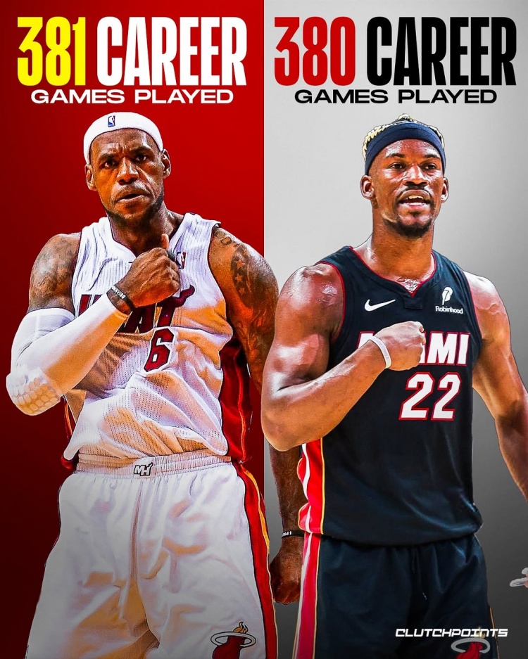 巴特勒在熱火5.5賽季(本賽季算在內(nèi))合計(jì)出戰(zhàn)380場(chǎng)比賽(316場(chǎng)常規(guī)賽+64場(chǎng)季后賽)