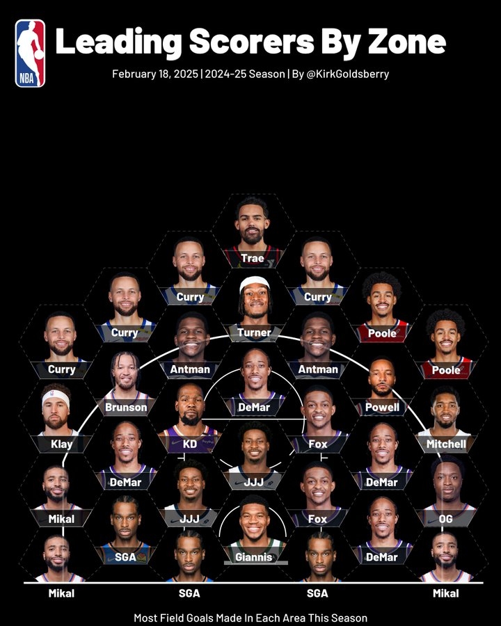 本賽季截至目前各區(qū)域運(yùn)動(dòng)戰(zhàn)進(jìn)球最多的球員