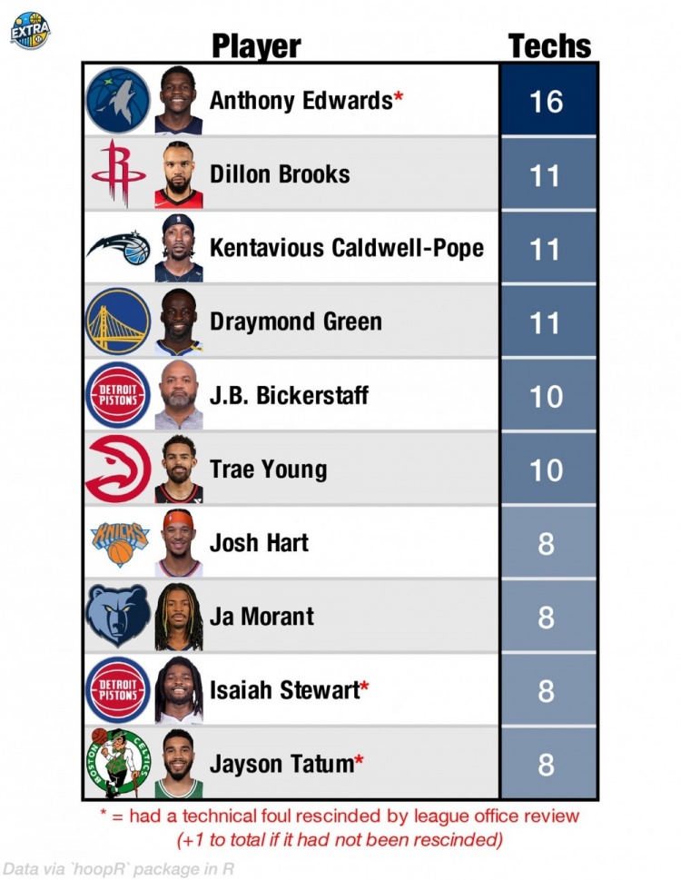 帶*:被撤銷(xiāo)過(guò)1次技犯的球員(若沒(méi)撤銷(xiāo)圖上數(shù)據(jù)還要加1次)