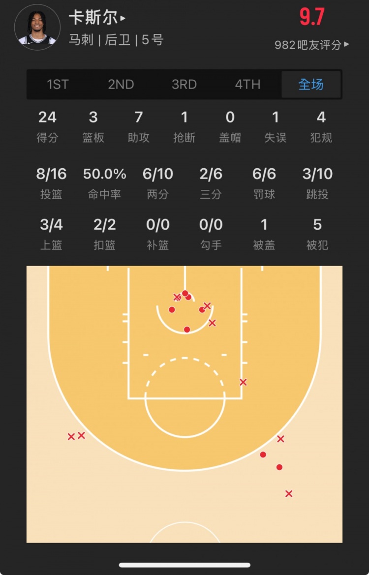 馬刺4號(hào)秀 斯蒂芬-卡斯?fàn)?登場(chǎng)32.5分鐘