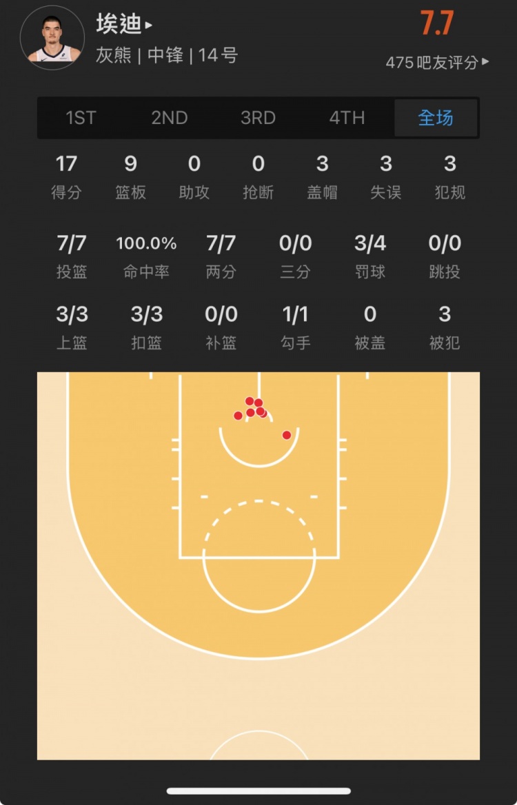 灰熊9號(hào)秀 扎克-埃迪 登場(chǎng)26.2分鐘