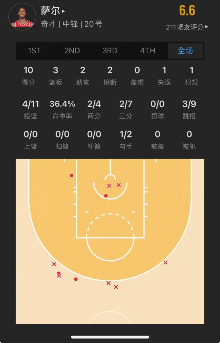 奇才榜眼秀 亞歷克斯-薩爾 登場(chǎng)25.7分鐘