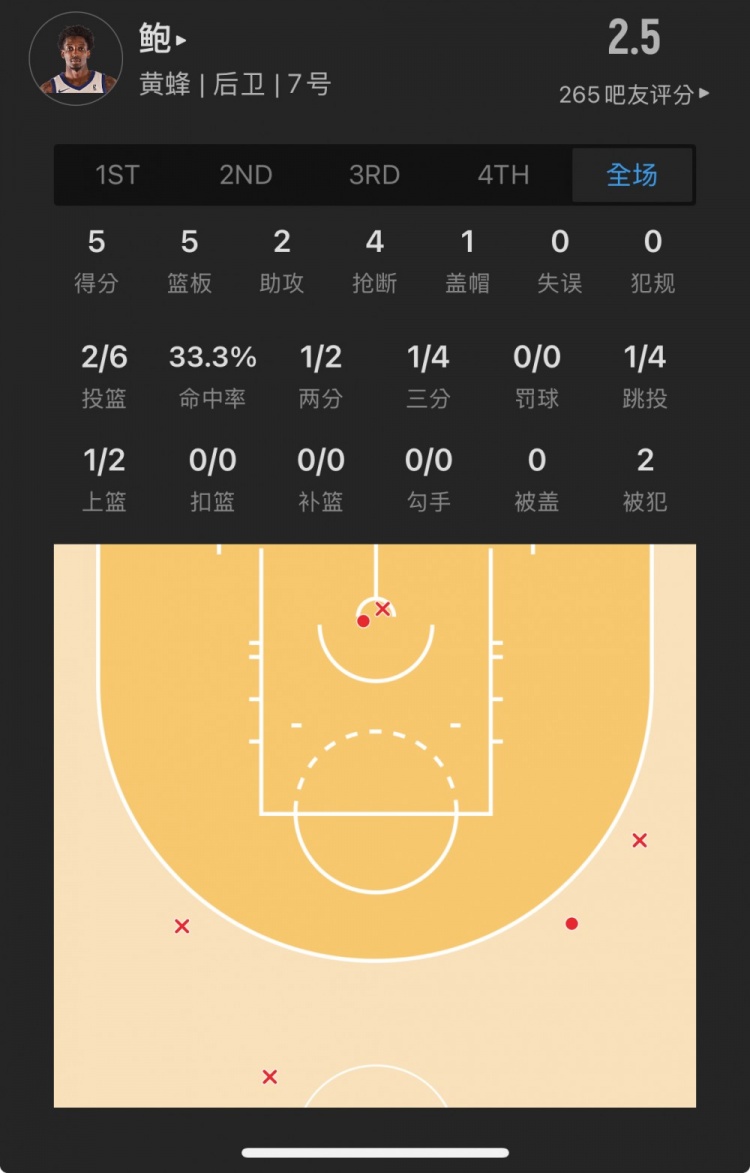 黃蜂落選秀 達(dá)米恩-鮑 登場(chǎng)19.8分鐘