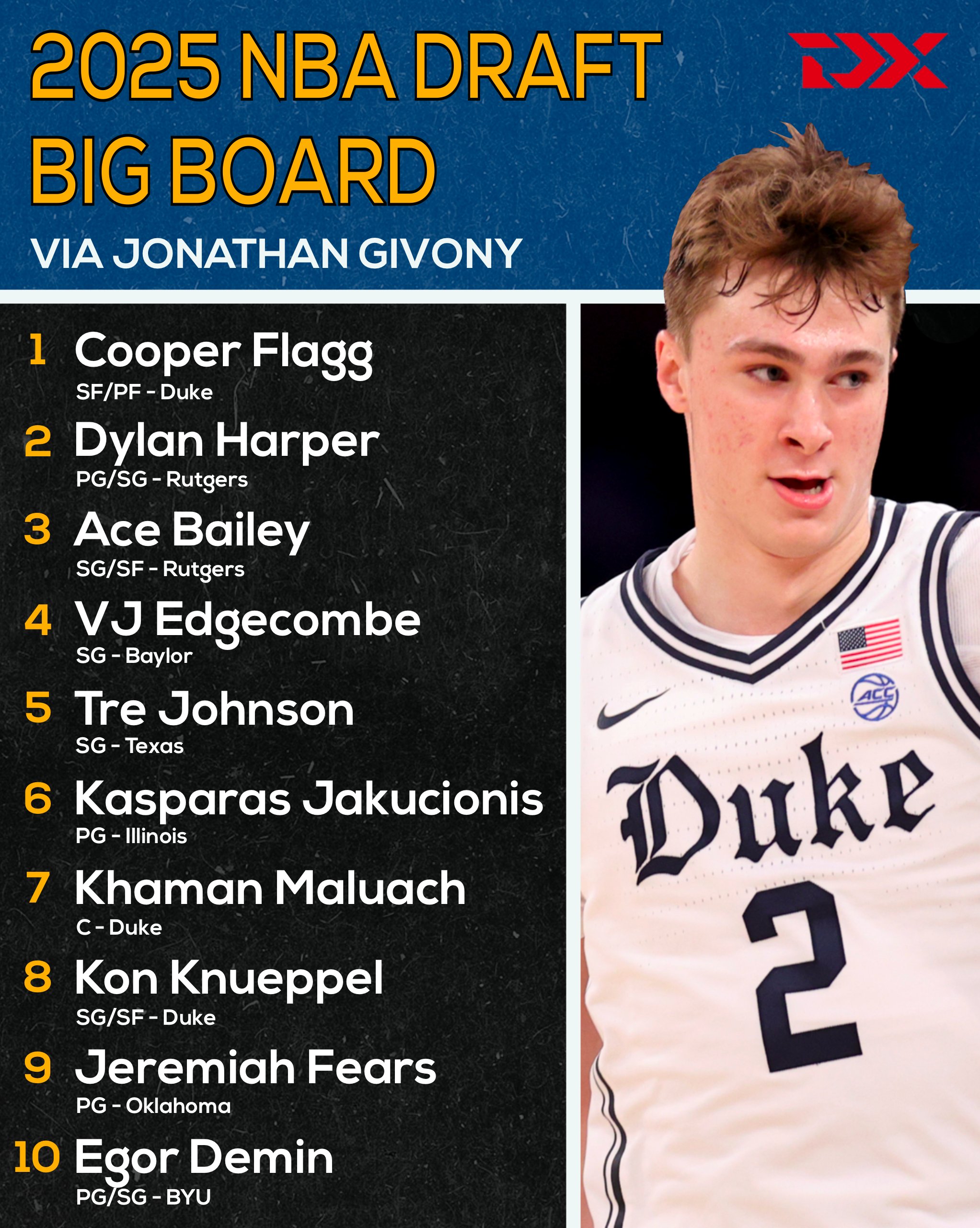 ESPN本次榜單前四位與TA榜單完全一致,杜克大學(xué)新星庫珀-弗拉格穩(wěn)居首位,羅格斯大學(xué)雙子星迪倫-哈珀和埃斯-貝利分列二三,第四位是來自巴哈馬的新人后衛(wèi)埃奇庫姆。