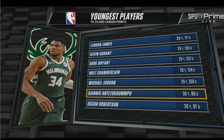 這樣一來,字母哥(30歲89天)成為NBA歷史解鎖20000分第6年輕的球員!