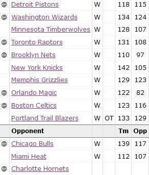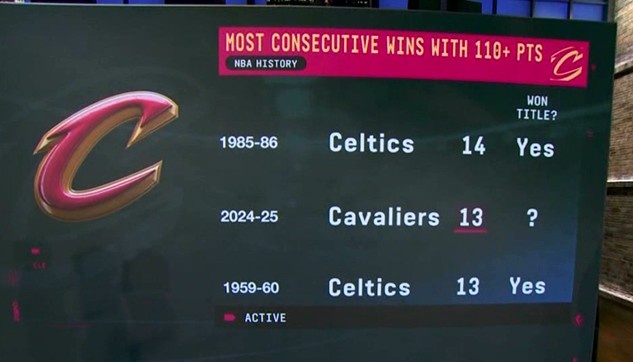 NBA常規(guī)賽,騎士118-117險(xiǎn)勝黃蜂,豪取聯(lián)盟最長的13連勝。這13連勝期間,騎士得分都至少是110,他們也成為歷史第3支至少砍下13連勝且得分都在110+的球隊(duì)。此前2次都是凱爾特人做到,他們在單賽季的季后賽結(jié)果為:1985-86賽季,14連勝,最終奪冠1959-60賽季,13連勝,最終奪冠 本文標(biāo)簽: 籃球 NBA 凱爾特人