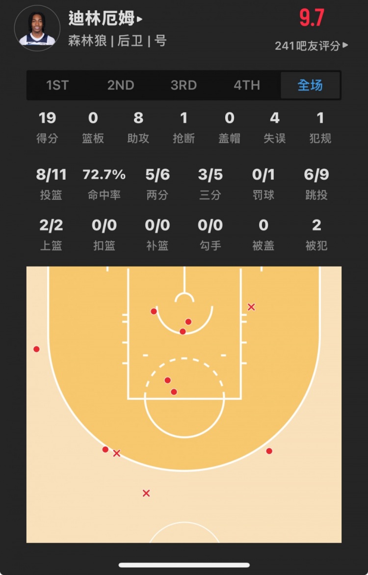 森林狼8號秀 羅布-迪林厄姆 登場23.1分鐘