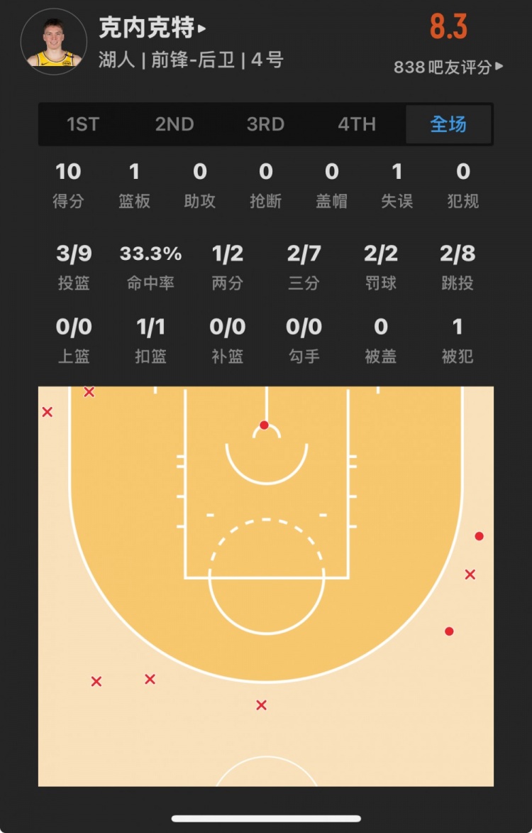 湖人17號秀 道爾頓-克內(nèi)克特 登場22.2分鐘