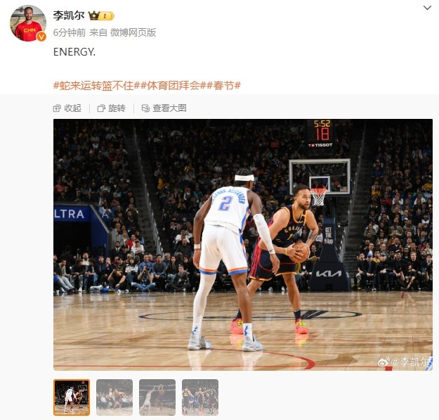 2月1日訊 今天,勇士球員李凱爾更新了個(gè)人微博。李凱爾曬出自己的多張賽場(chǎng)照,配文寫(xiě)道:“能量感?!?/p>勇士目前的戰(zhàn)績(jī)?yōu)?4勝23負(fù),排名西部第十一。他們將在今天上午11:00主場(chǎng)迎戰(zhàn)太陽(yáng)。 本文標(biāo)簽: NBA 籃球 勇士 李凱爾