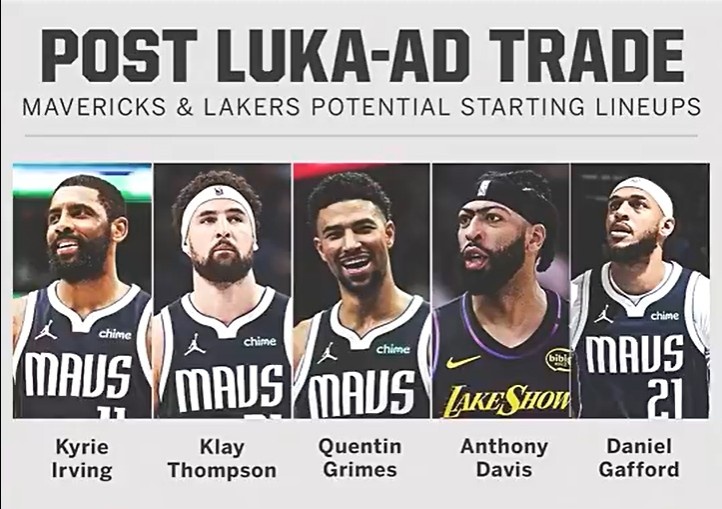 那么,獨(dú)行俠迎接戴維斯后,陣容怎么樣?可以預(yù)計(jì)的是本賽季剩余時(shí)間,獨(dú)行俠都會(huì)打得風(fēng)生水起,是西部奪冠大熱門。戴維斯將如愿打四號(hào)位,中鋒位置頂?shù)氖侨R夫利和加福德。其他三個(gè)位置則將由歐文、克萊-湯普森和華盛頓所組成,替補(bǔ)上還有丁威迪等。