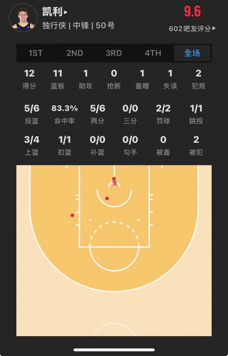 獨(dú)行俠落選秀 凱勒-凱利 登場34.1分鐘