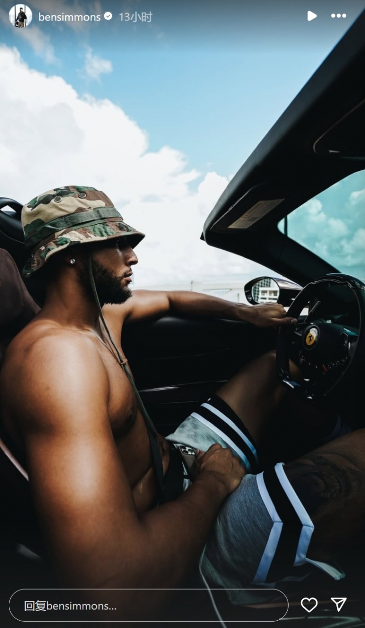 2月4日訊 今天,籃網球星本-西蒙斯在INS曬出了自己光膀子開法拉利的照片。