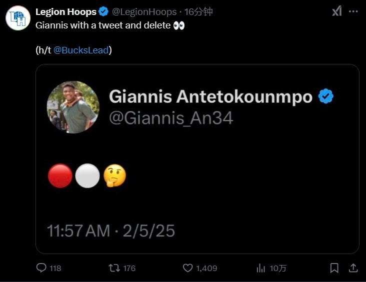 推特內(nèi)容為:紅白色+思考的表情包。不過,在發(fā)了這條推特后,字母又將其刪除了。