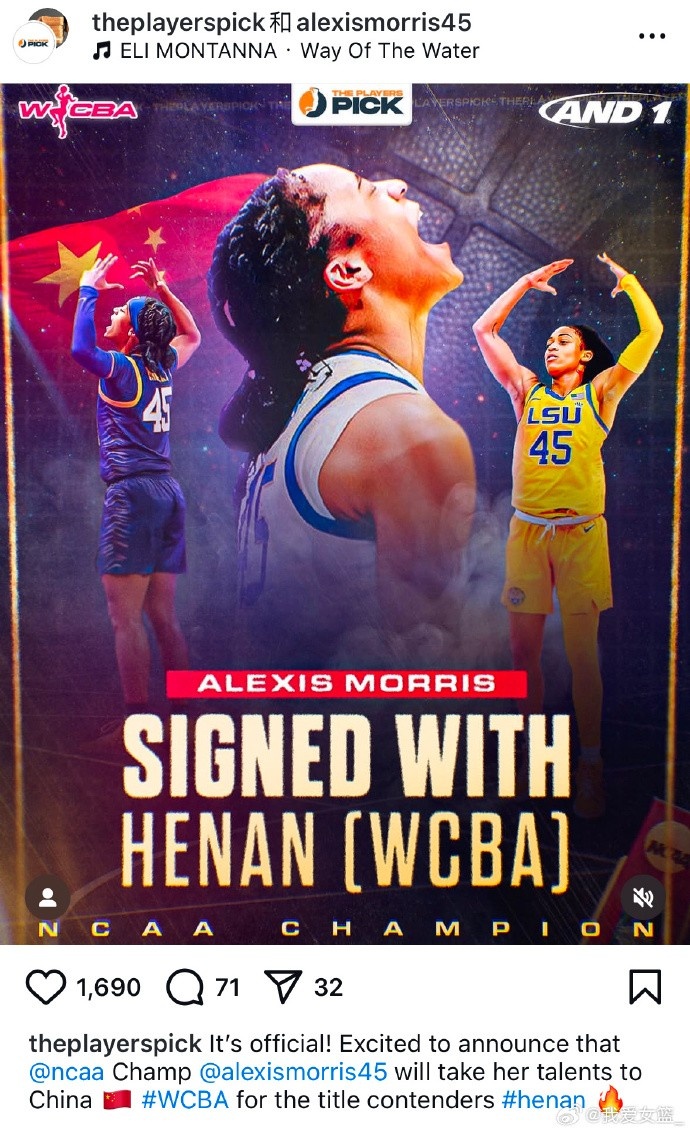 昨天深夜,據(jù)經(jīng)紀(jì)公司ThePlayersPick消息,原路易斯安那州立大學(xué)女籃后衛(wèi)艾里克西斯-莫里斯簽約河南女籃。艾里克西斯身高1米75,今年25歲,曾隨路易斯安那州立大學(xué)女籃奪得2023年NCAA全國冠軍。2023年WNBA選秀總第22順位被康涅狄格太陽隊(duì)選中。