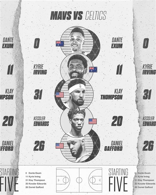 2月7日訊 今天上午8:30,獨(dú)行俠對(duì)陣凱爾特人,賽前雙方公布了本場(chǎng)首發(fā):