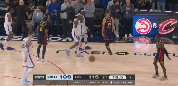 耗掉了17秒!庫里滿場(chǎng)跑雷霆沒斷下來也沒犯規(guī) 最后科爾暫停