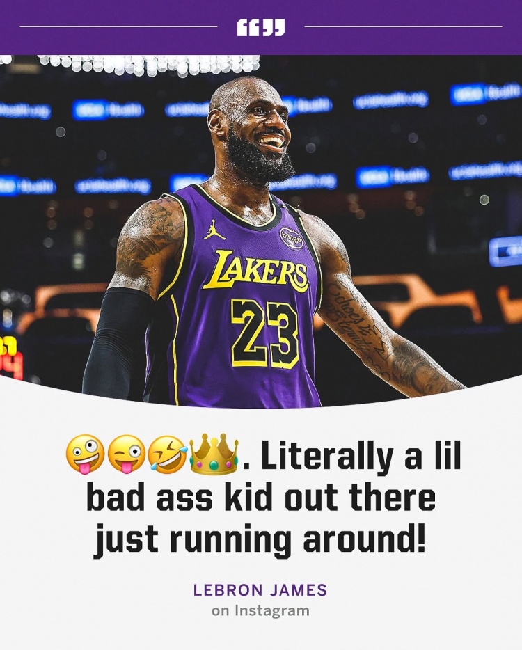 今天,詹姆斯在INS分享了昨天比賽的圖片,并寫道:“????????????????。真正的,一個(gè)小壞蛋在場上跑來跑去?!?/p>