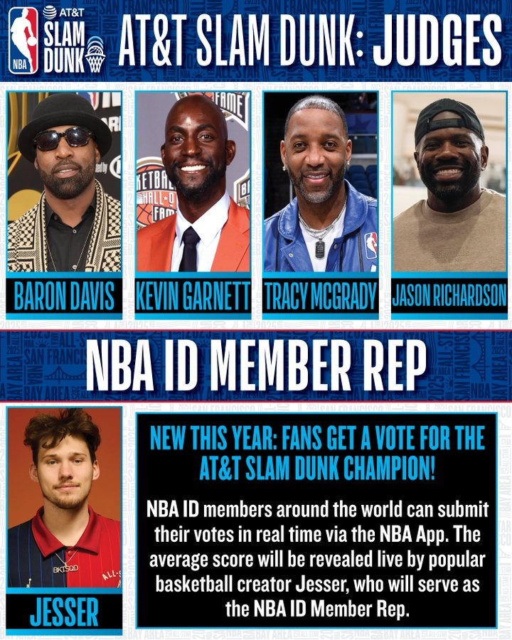 2月8日訊 今日,NBA官方公布了2025舊金山全明星扣籃大賽的評委團。