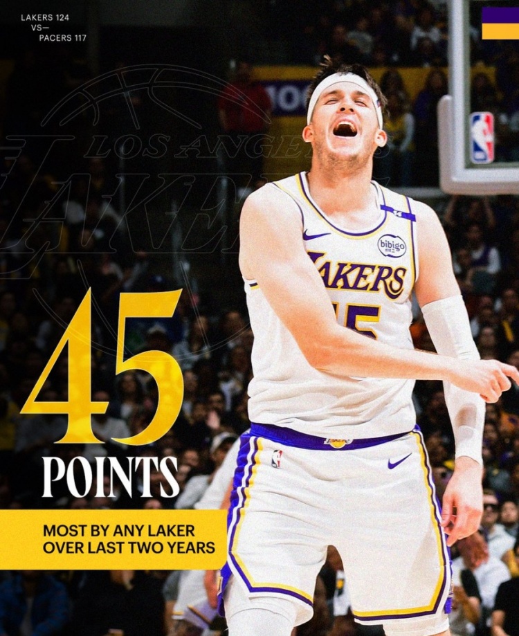 據(jù)統(tǒng)計(jì),45分是近兩年湖人球員單場最高分(詹姆斯最高42分、濃眉最高也是42分)。