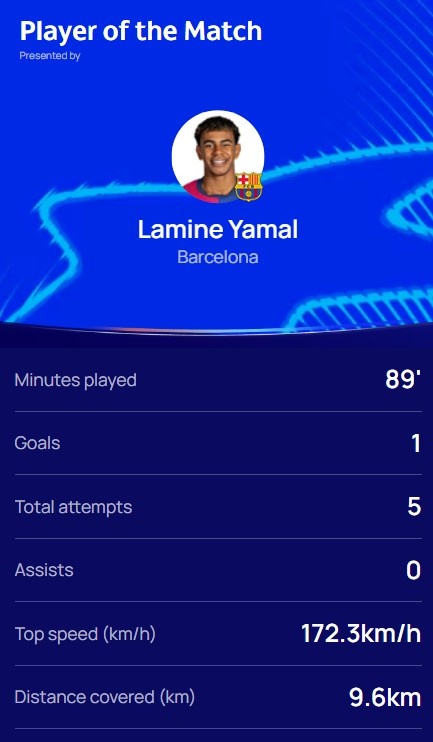 1月30日訊 巴薩在本輪歐冠2-2戰(zhàn)平亞特蘭大,亞馬爾在賽后被評(píng)為全場(chǎng)最佳球員。亞馬爾在本場(chǎng)比賽出戰(zhàn)89分鐘,5次射門打進(jìn)1球,跑動(dòng)距離9.6公里。 本文標(biāo)簽: 足球 西甲 巴塞羅那 意甲 亞特蘭大 歐冠
