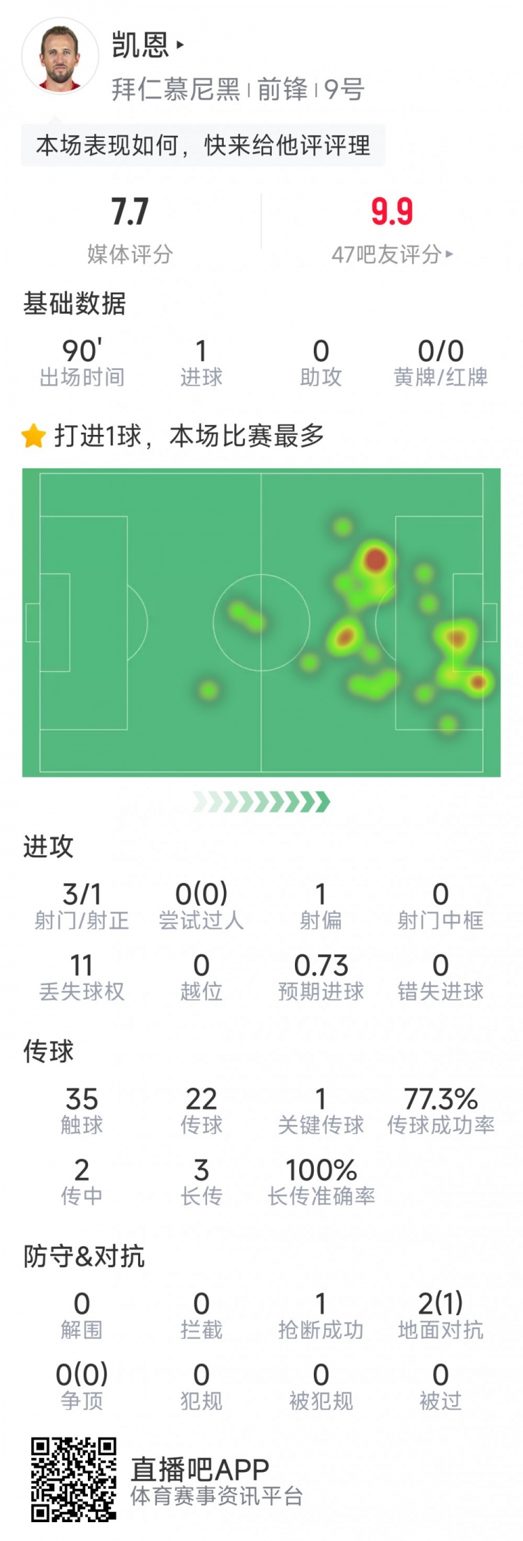 1月30日訊 在本輪歐冠,拜仁3-1擊敗布拉迪斯拉發(fā),以下為凱恩本場數(shù)據(jù):比賽時間90分鐘1粒進(jìn)球3射1正35次觸球1次關(guān)鍵傳球傳球成功率77.3%2次對抗1次成功sofa評分7.7分 本文標(biāo)簽: 足球 德甲 拜仁慕尼黑