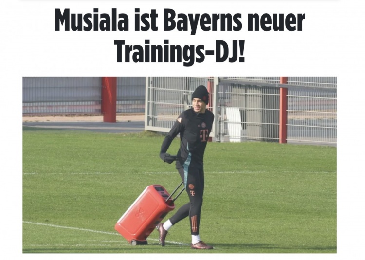 報道中表示從本周一開始,拜仁有了一位新的訓練音樂DJ:穆西亞拉。所有人都對穆西亞拉選擇的音樂感到高興,直到有些球員由于音樂太大聲——在整個訓練場地都始終能夠聽到這些音樂的聲音——而聽不清體能教練Bram Geers的指令。