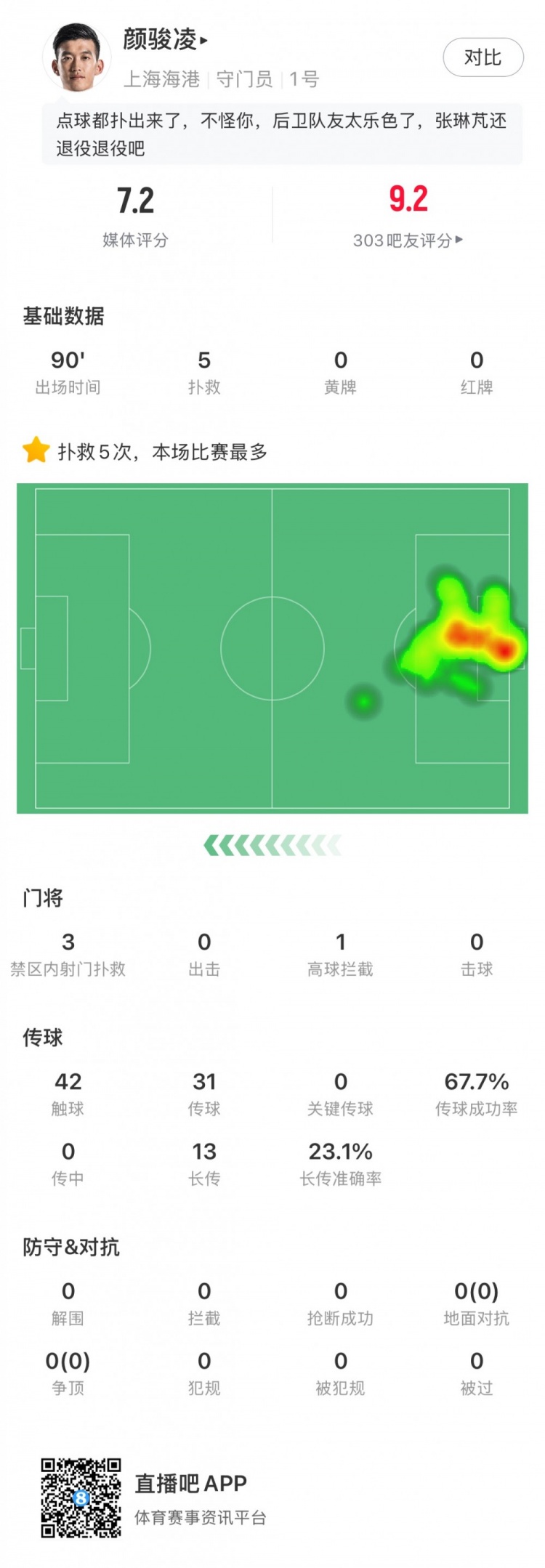 全場比賽顏駿凌貢獻(xiàn)數(shù)次撲救,還將大迫勇也的點球拒之門外,但仍無力幫助球隊扭轉(zhuǎn)頹勢,賽后他獲得隊內(nèi)最高的7.2分。