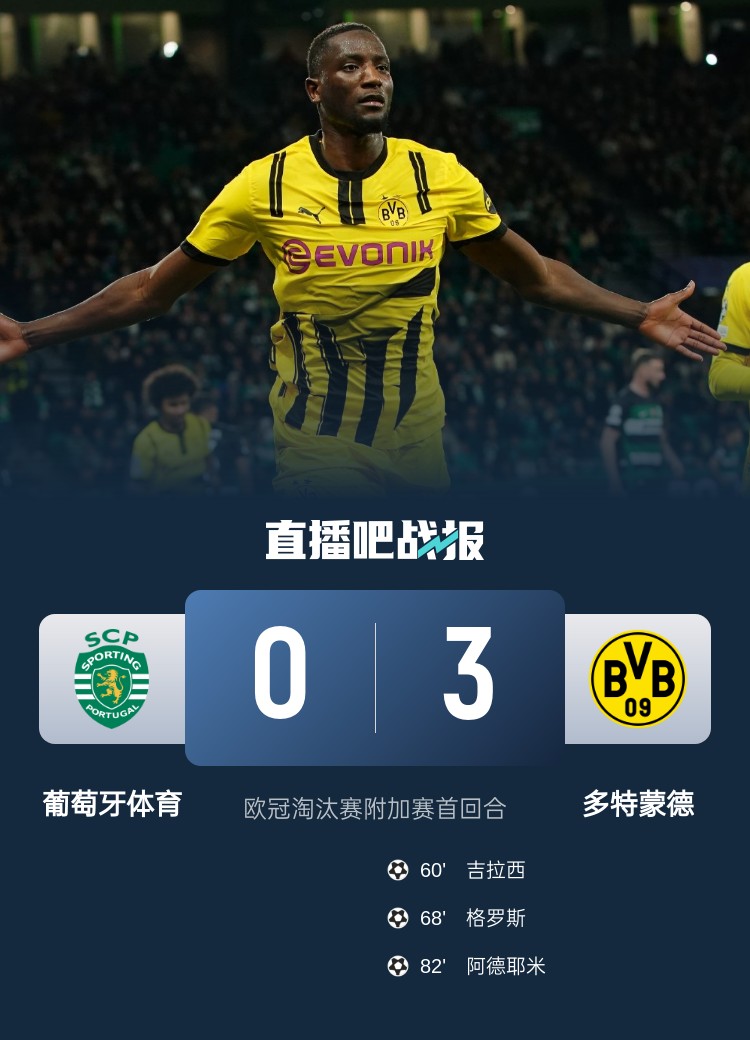 吉拉西、阿德耶米破門,多特蒙德客場3-0擊敗葡萄牙體育。