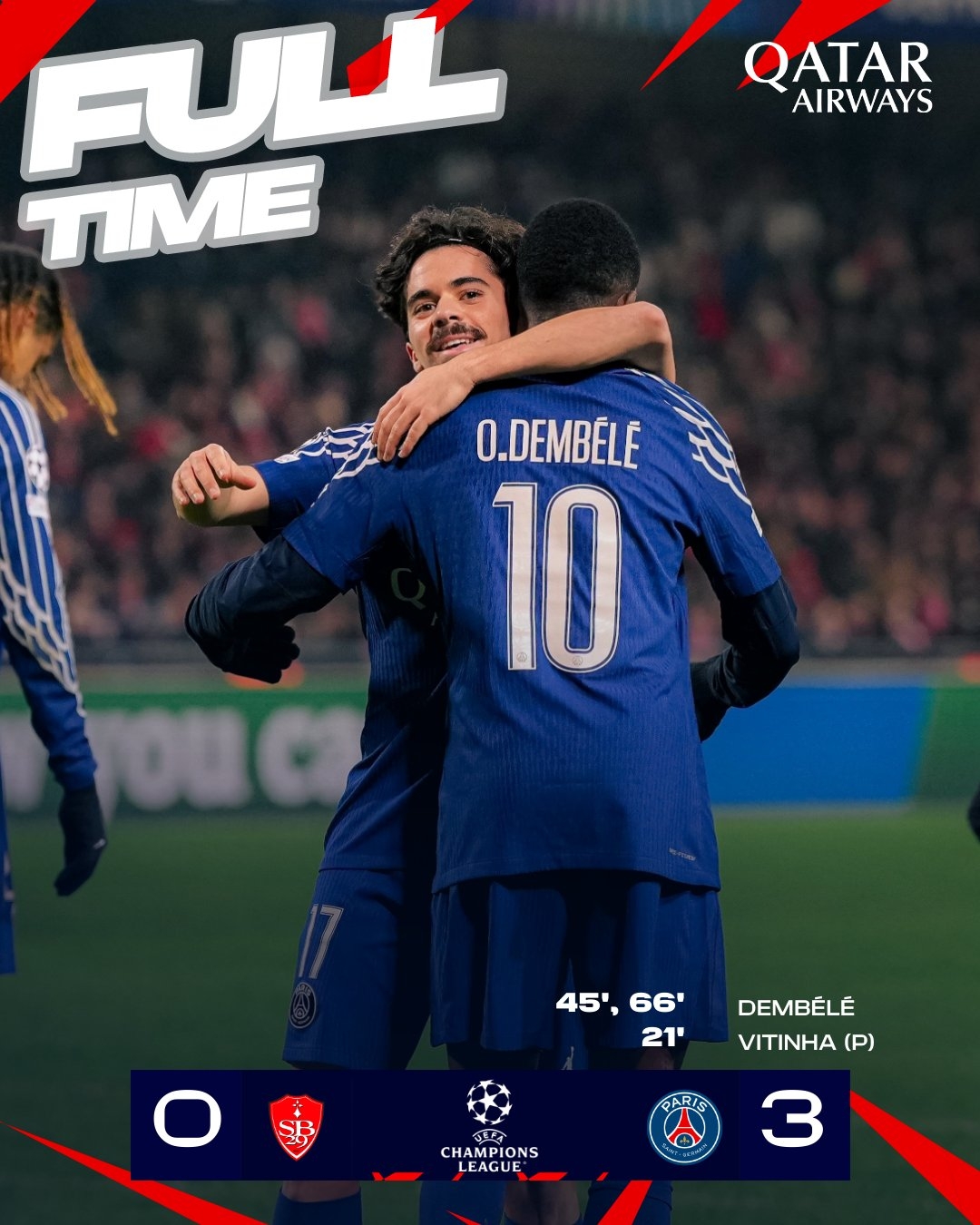 02月12日訊 歐冠附加賽巴黎3-0擊敗布雷斯特,登貝萊本場(chǎng)獨(dú)造三球:造點(diǎn)+雙響。