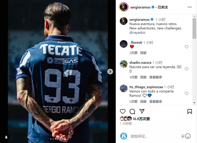 2月12日訊 38歲西班牙中衛(wèi)拉莫斯更新社媒動(dòng)態(tài),曬出身穿蒙特雷球衣的背影照片。拉莫斯自由身加盟墨西哥俱樂部蒙特雷,為紀(jì)念歐冠決賽絕平進(jìn)球,他選擇身穿93號(hào)球衣。拉莫斯社媒曬出身穿蒙特雷93號(hào)球衣的背影照片,配文:“新的冒險(xiǎn),新的挑戰(zhàn)。” 本文標(biāo)簽: 足球 西甲 皇家馬德里