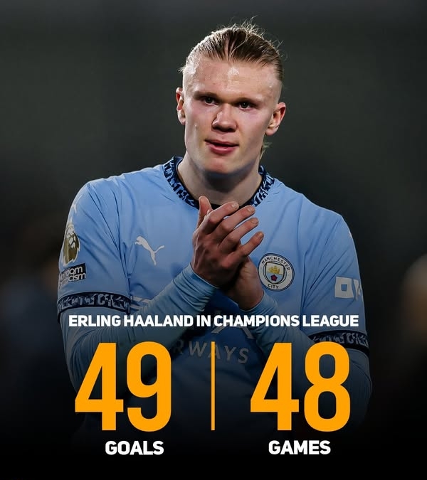 2023年3月15日,哈蘭德曾在對(duì)陣萊比錫的歐冠1/8決賽上演五子登科,一舉達(dá)成歐冠30球里程碑,并且打破姆巴佩的紀(jì)錄,成為最年輕的歐冠30球先生。