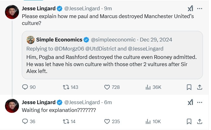 2月12日訊 一位球迷在2024年12月29日在社媒上評(píng)論表示,林加德&博格巴&拉什福德毀了曼聯(lián)文化,目前遭到了林加德本人的反駁。